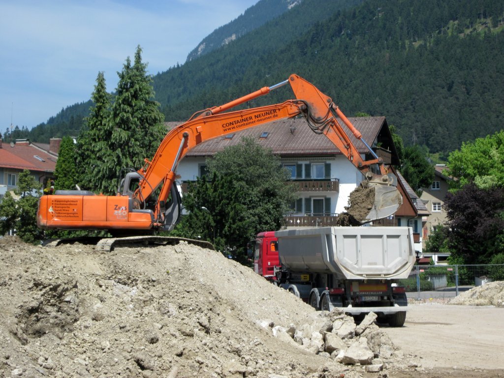 Hitachi Zaxis 250 LCN beläd im Juli 2013 einen MB Sattelzug in GAP