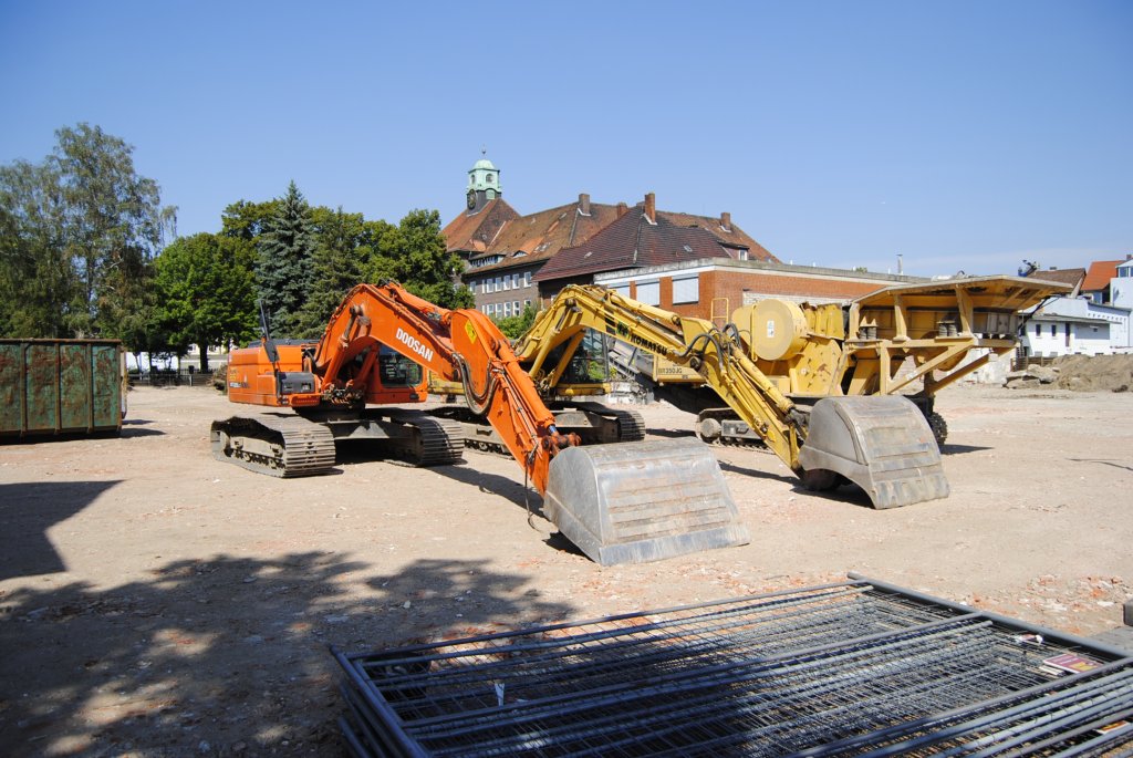 Diese zwei Bagger haben wohl in der Ahltener Straße in Lehrte in Dienst getan. werden wohl bald, am einen anderen Ort sein. Hiern wir bald ein Geschäftshaus und Supermark gebaut. Aufnahme von 07.08.10.