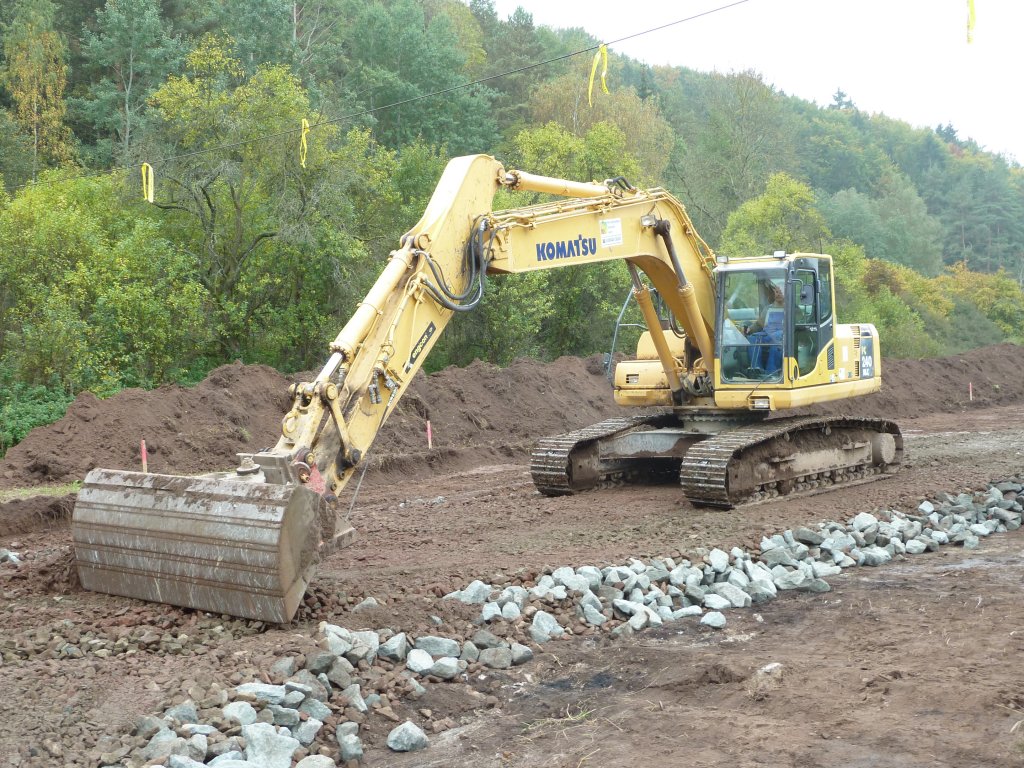 Komatsu PC 240 der Firma LANDSCHAFTSBAU DITTERSDORF auf einer Baustelle in der Nähe von Rohr/Thüringen, Oktober 2010