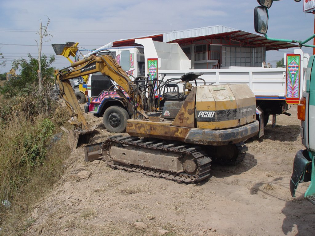 Ein gebrauchter Komatsu PC30 Kettenbagger steht in der Nähe aon Buri Ram im Nordosten Thailands am 20.01.2011 zum Verkauf
