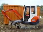 Kleiner Kubota U36-4 Raupenbagger abgestellt nahe einer Baustelle. 09.2023