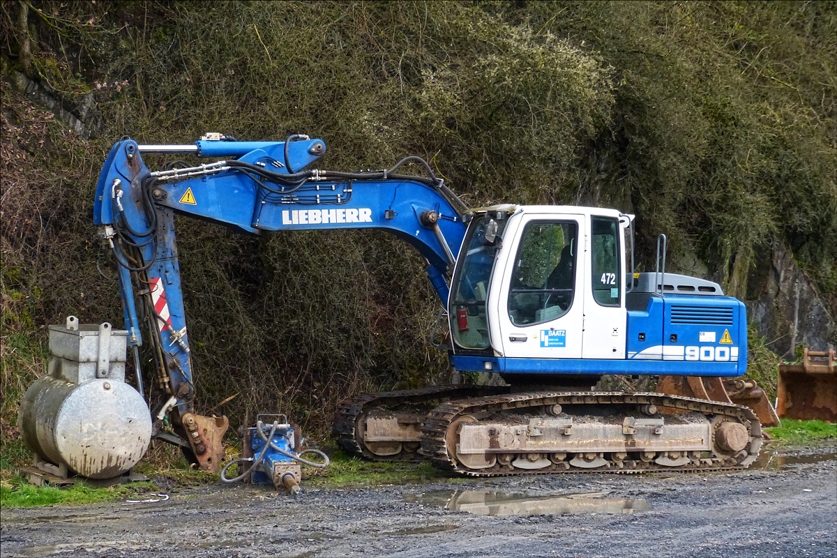 Liebherr Raupenbagger abgestellt am Rande einer Baustelle. April 2019