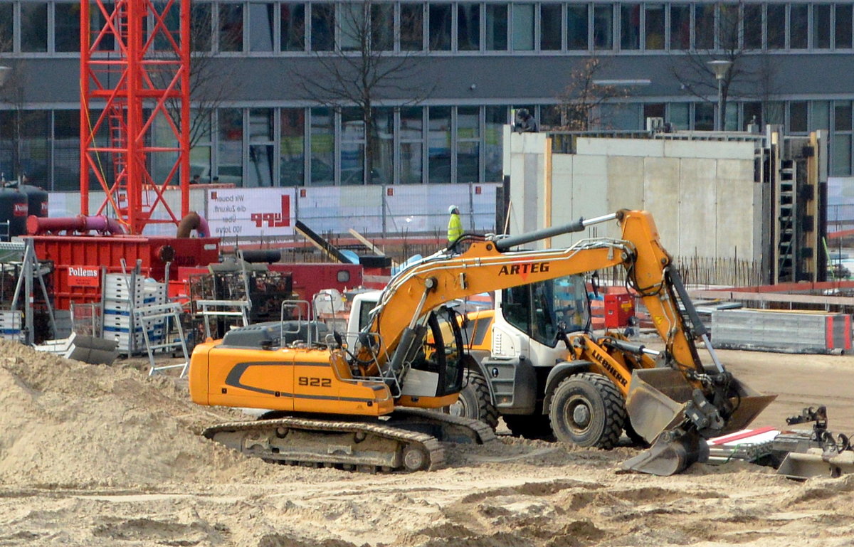 ARTEG Baugesellschaft mbH für Abbruch und Erdbau mit einem LIEBHERR R 922 Litronic Raupenbagger am 24.03.21 Großbaustelle Berlin Adlershof.