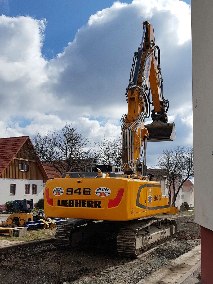 =Liebherr 946 von FEICKERT-Bau, eingesetzt auf einer Baustelle in Langenleiten im April 2021