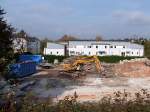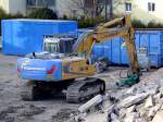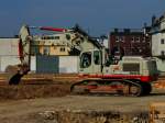 Kolb Erdbau und Abbruch Liebherr 960 mit Longfront Ausleger am 30.12.25 in Erlensee über den Zaun fotografiert
