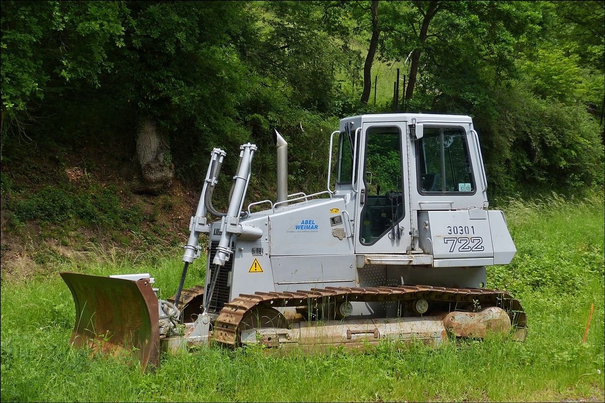 LIEBHERR PR 722 B-L Planierraupe - Schubraupe steht an einer Baustelle am Rande der Staße. 26.05.2014