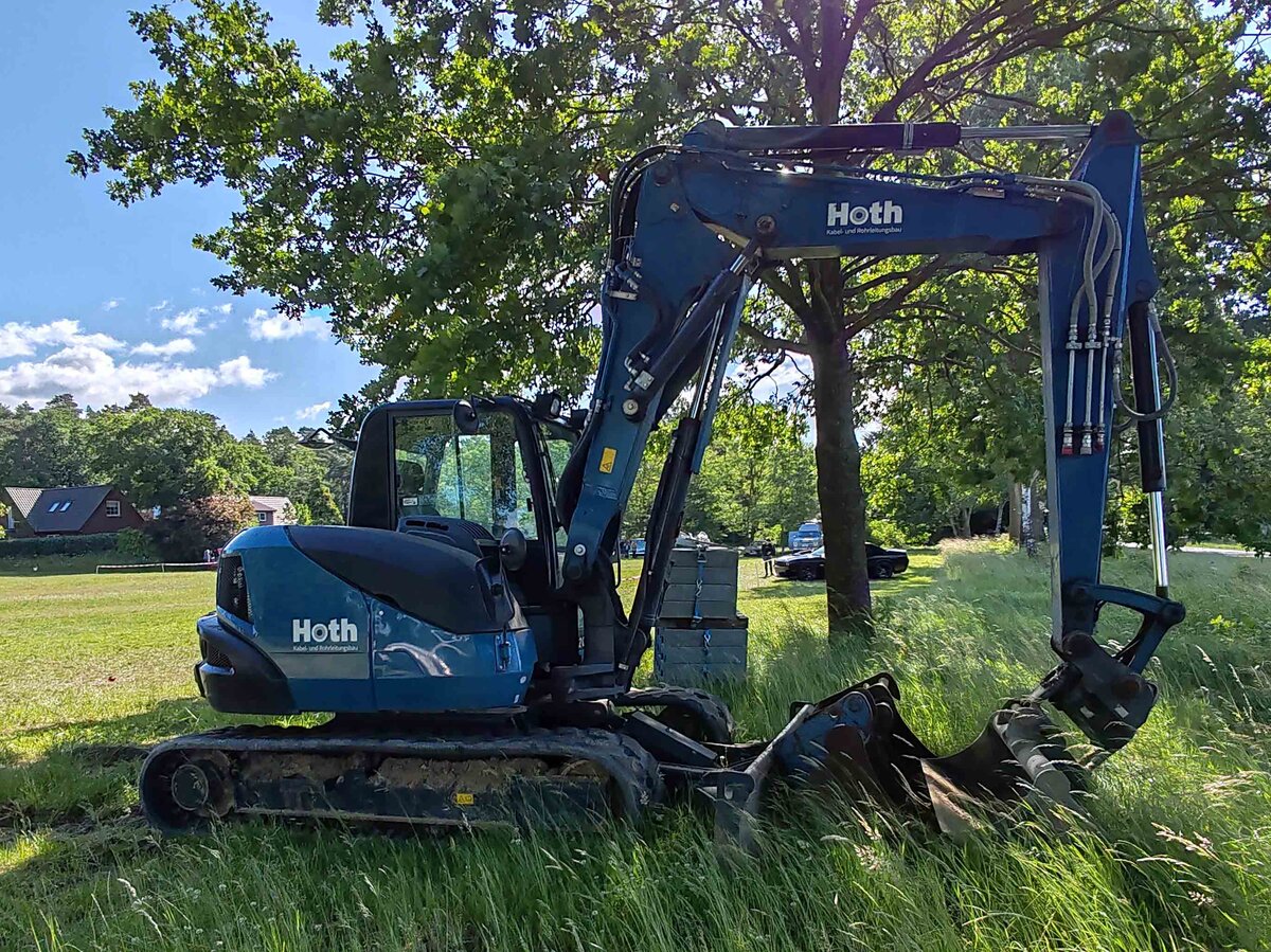 =unbekannter Bagger steht auf einer Baustelle in Bardowick, 06-2024