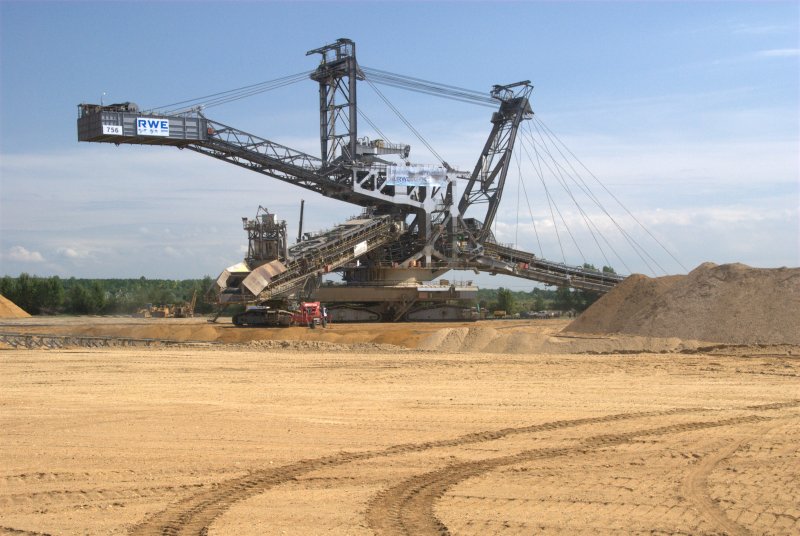 Absetzer 756 von RWE-Power am 17.08.2009 (Hersteller Demag Lauchhammer, Dienstgewicht 5.013t. Höhe 57m.Breite 38.Länge 183m. Bauj.1977) in der Nähe von Bergheim/Glesch. Geht von hieraus am 20.08-04.09.2009 auf die Reise zum Tagebau Hambach.(Fahrgeschwindigkeit max. 9m/min) Fotografiert vom Aussichtspunkt Bergheim aus