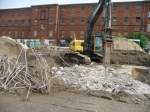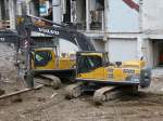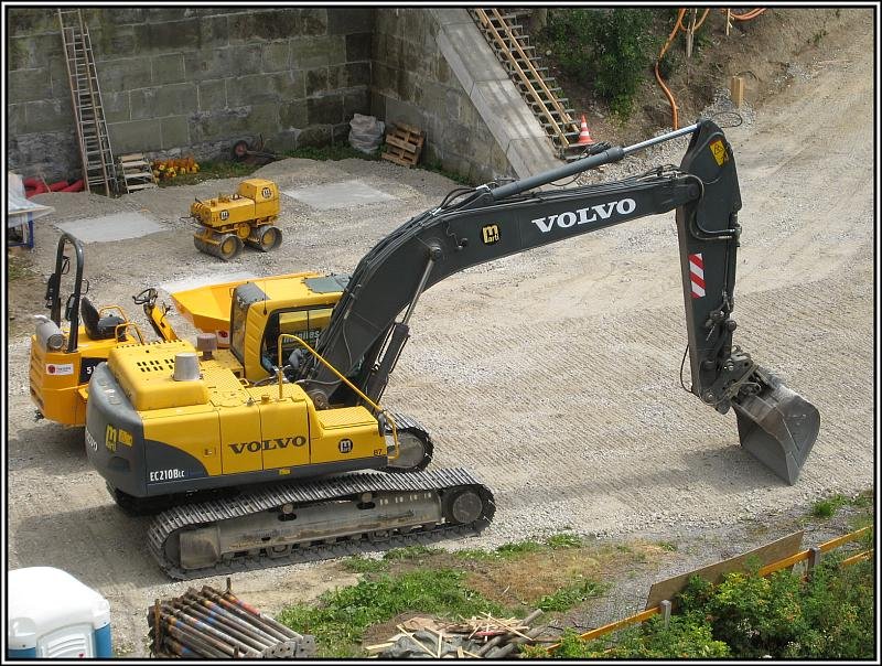 Ein Volvo-Bagger Typ EC210B, aufgenommen am 26.07.2008 in Bern von der Nydeggbrücke aus, nahe dem Bärengraben.