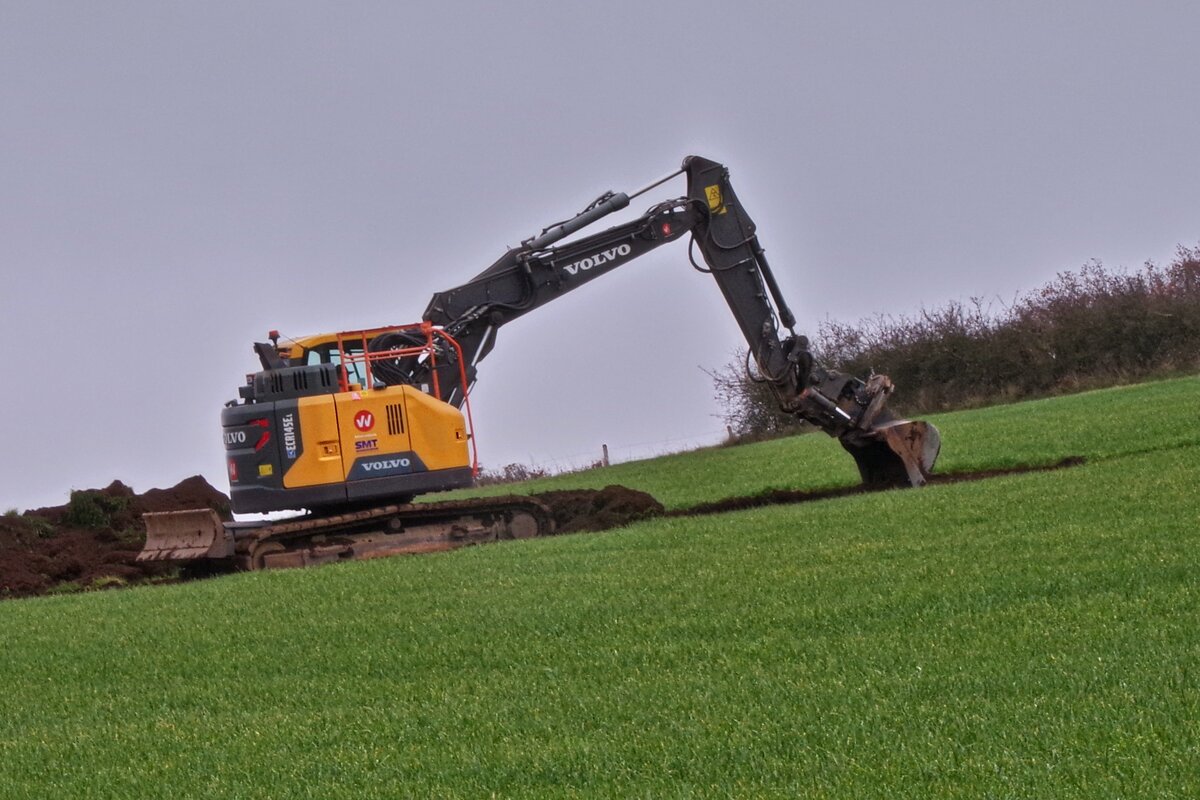 Volvo EC220DL Raupenbagger mit Durchblick auf den Case 788 Mobilbagger in Kolpino, 17.9.17