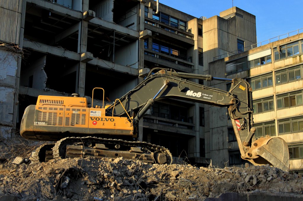 Ein Volvo EC700BLC (70to., 470PS) der Firma Moß aus Lingen/Ems am 24.01.2012. In Aachen wird zur Zeit das Verfügungszentrum der Rwth an der Kopernikusstraße abgerissen.