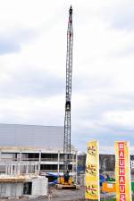 Ein kleiner Raupenkran auf einer Straßenbaustelle in Krefeld (22.02.11)