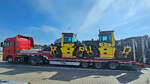 Dieser Sattelzug hatte zwei Straßenwalzen von BOMAG geladen. (Raststätte in Polen, September 2024)