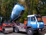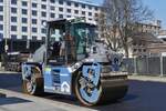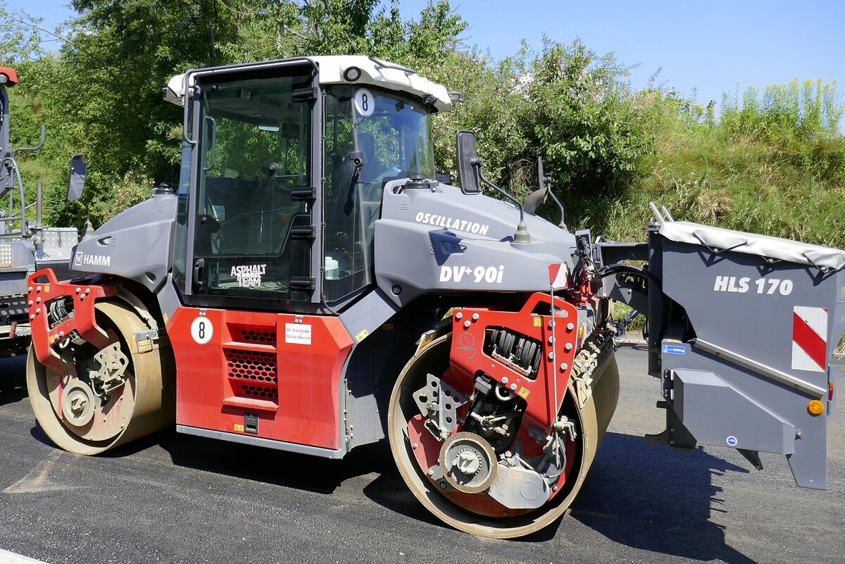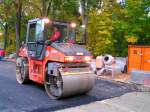 HAMM-DV6 (Osszilationswalze) ist emsig beim "Verdichten" des frisch aufgebrachten Asphaltes bei einer Straßenbaustelle in Ried i.I.; 081010