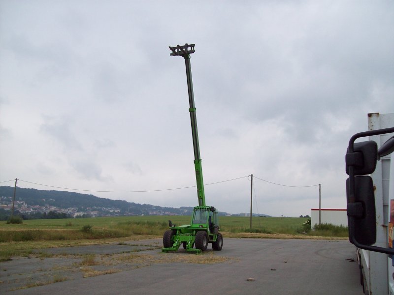 Merlo TF 45.11 Teleskoplader mit Schaufel vor einem landwirtschaftlichen Betrieb am 06.06.23