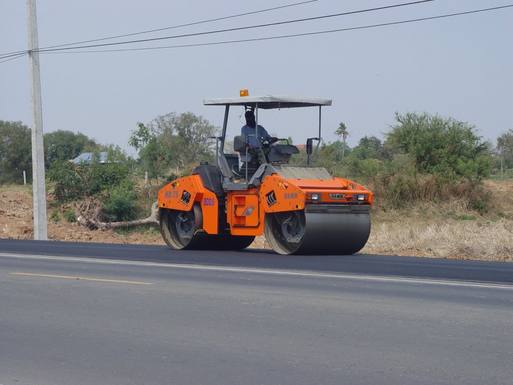 Diese Walze HD 75 der Fa. Hamm ist am 15.02.2011 nahe der Kleinstadt Lamplaimat im Nordosten Thailands im Einsatz.