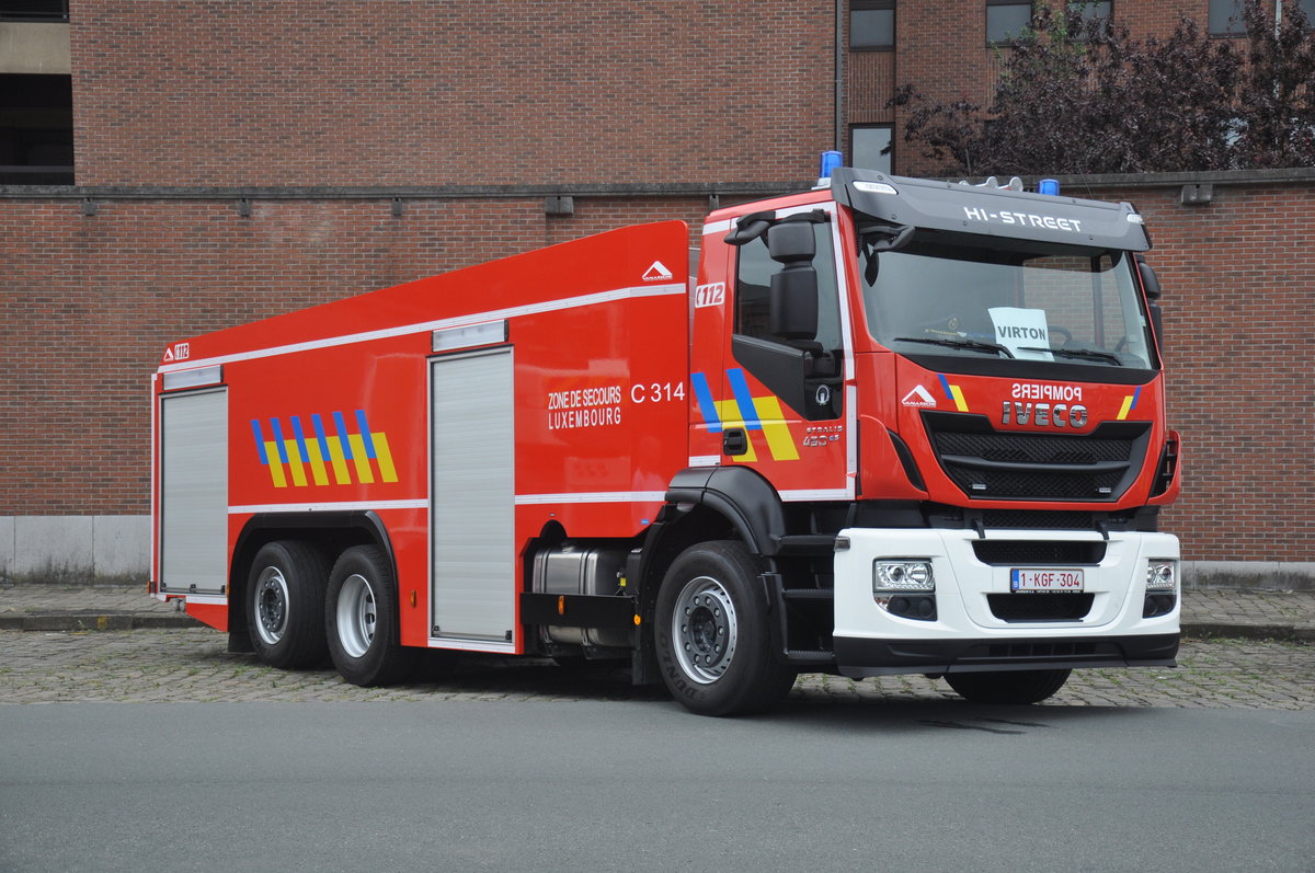 GTLF 14500 Iveco Stralis AD260 545 Aufbau Vanassche der Feuerwehr HVZ Luxembourg, Wache Virton, aufgenommen 21.07.2015 am Luchtmachtlaan Etterbeek