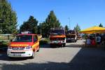 Feuerwehr Hofheim am Taunus VW T5 ELW (Florian Main-Taunus 1-11), Mercedes Benz RW1 (Florian Main-Taunus 1-51) und Mercedes Benz TLF 24/50 (Florian Main-Taunus 1-24) am 05.08.18 beim Tag der Offenen Tür zur 150 Jahre Feier