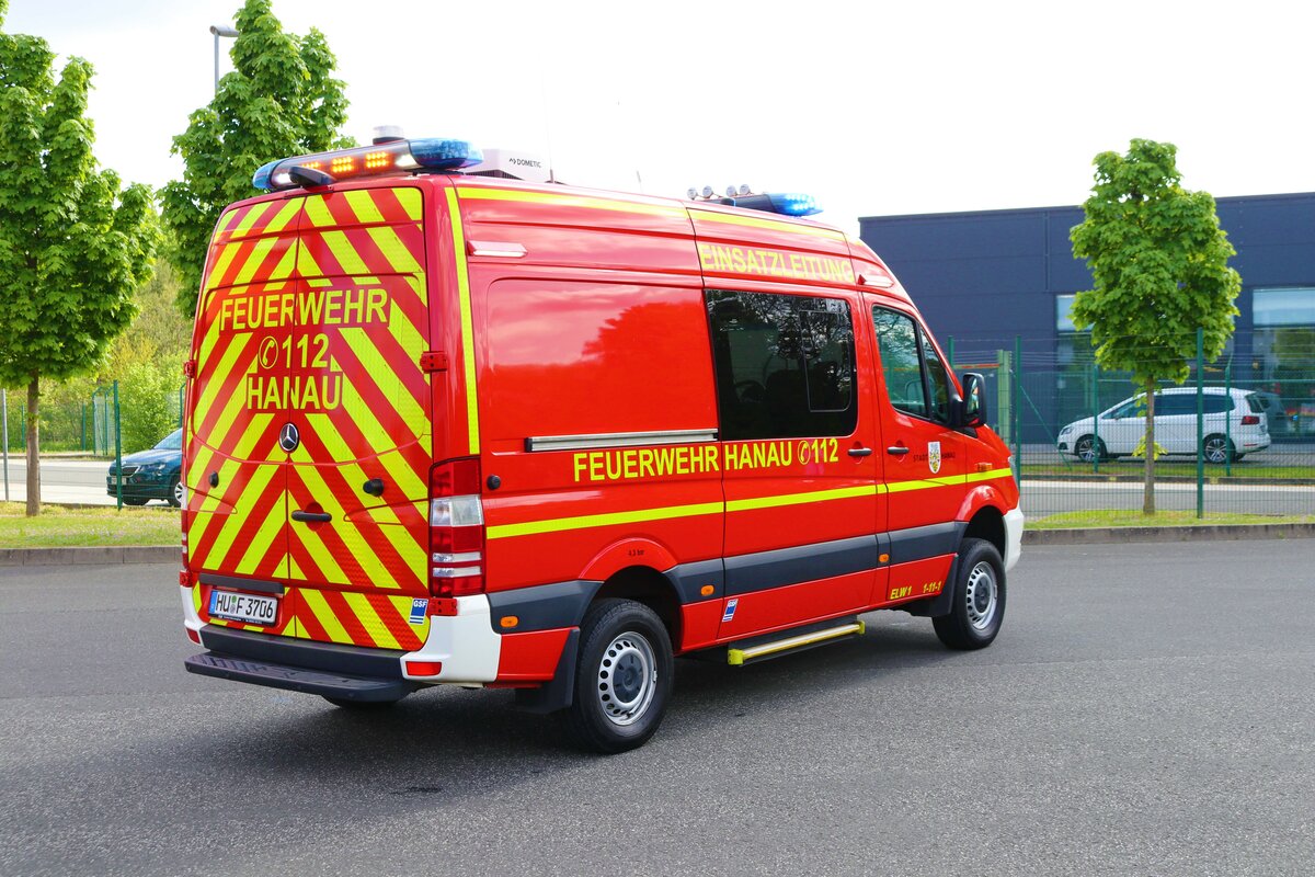 Feuerwehr Hanau Mercedes Benz Sprinter ELW (Florian Hanau 1-11-1) am 06.05.23 bei einem Fototermin