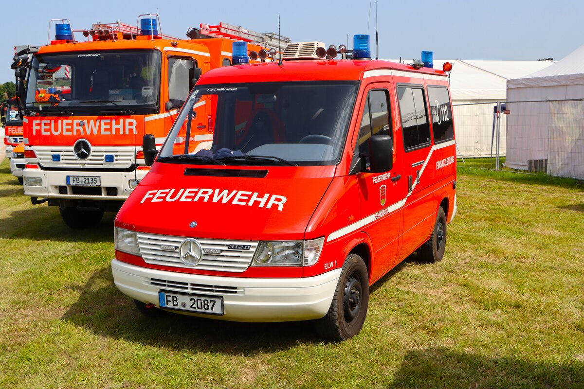 =VW T5 als Einsatzleitfahrzeug der Feuerwehr BURGHAUN steht in Hünfeld anl. der Feierlichkeiten "100 Jahre Feuerwehr HÜNFELD" im Juni 2025