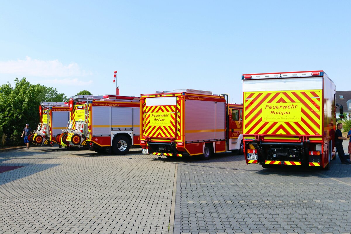 Feuerwehr Rodgau Scania HLF, MAN TGM KLAF und MAN TGM GW-L am 08.06.23 beim Tag der offenen Tür von hinten