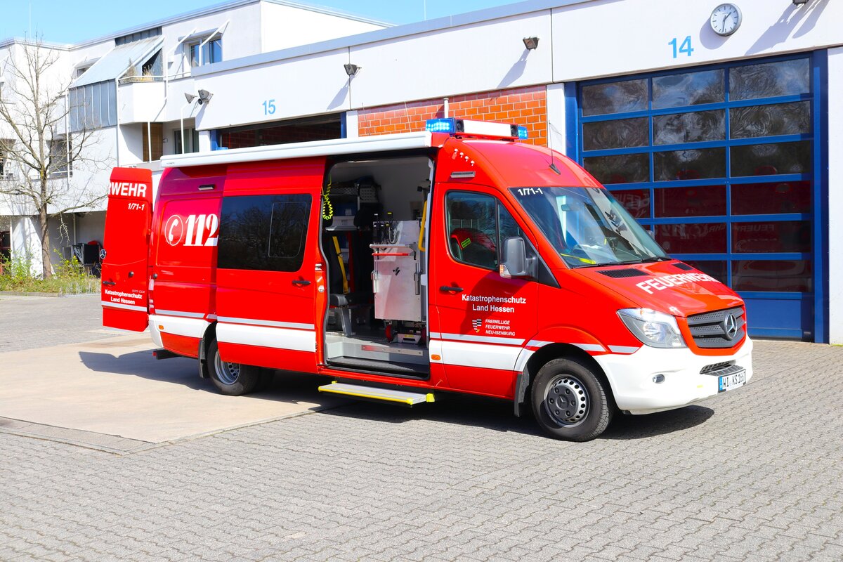 Feuerwehr Neu-Isenburg Mercedes Benz Sprinter GW-ABC Erkunder (Florian Isenburg 1/71-1) am 23.03.24 bei einen Fototermin.