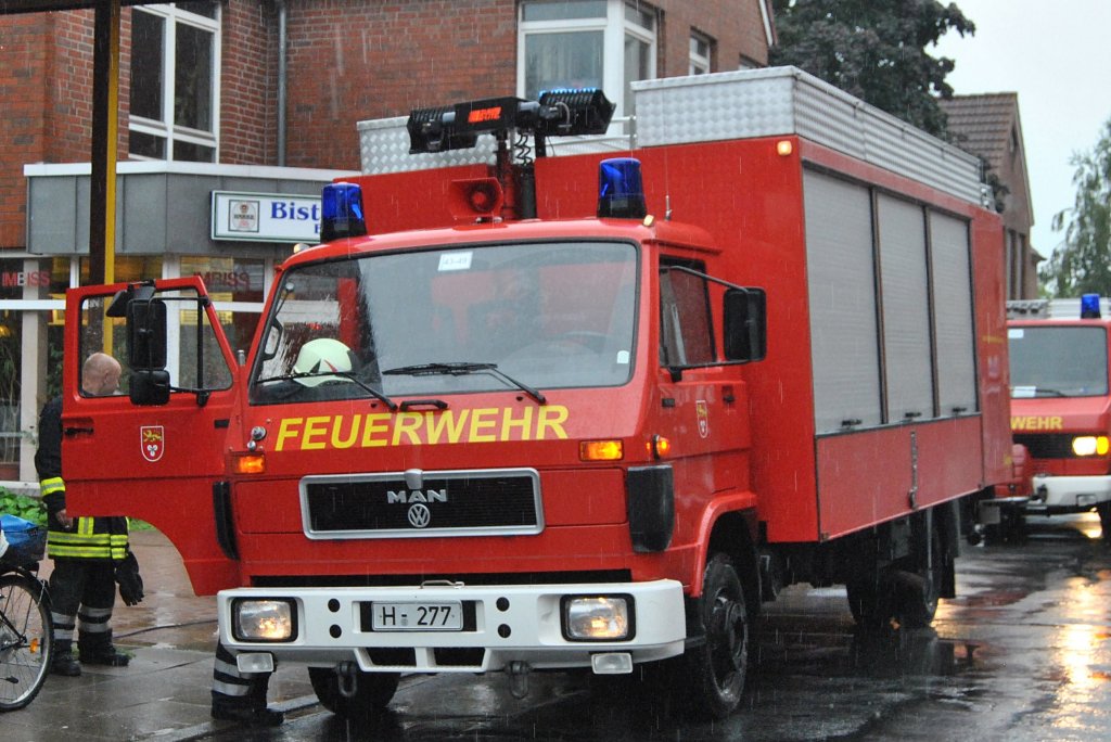 Gerätewagen der Ortsfeuerwehr Lehrte in der Bahnhofstraße Lehrte. Die Feuerwehr musste wegen überschwemmungen in Bahnhoftunnel anrücken. Foto vom 27.08.10.