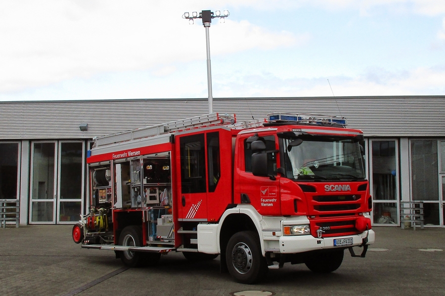 Hilfeleistungslöschgruppenfahrzeug (HLF 20) der Freiwilligen Feuerwehr Viersen (Hauptwache Viersen), auf Basis eines Scania P 360 mit einem feuerwehrtechnischen Auf- und Ausbau durch die Firma Albert Ziegler GmbH.