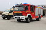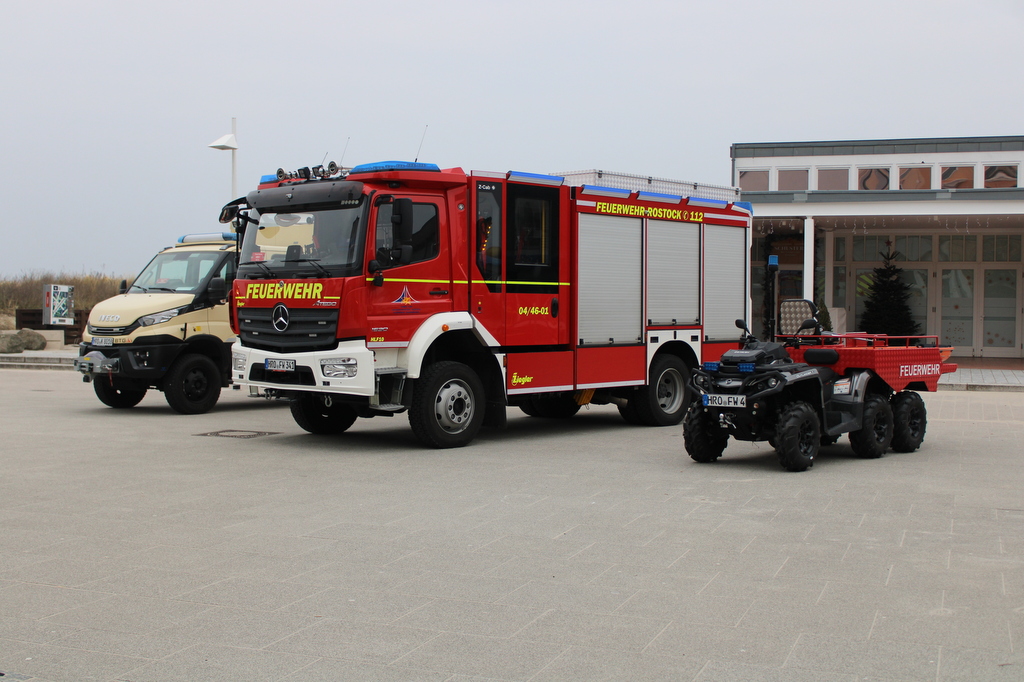 GW-Wassergefahren,Mercedes Atego HLF 10 und ATV von der Feuerwehr Warnemünde standen am 08.02.2025 in Warnemünde.