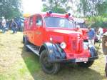 =Iveco Magirus als DLK 23/12, gesehen auf dem Ausstellungsgelände anl. der Feierlichkeiten  100 Jahre Feuerwehr HÜNFELD  im Juni 2025