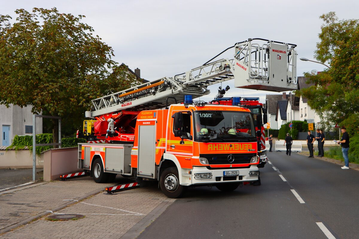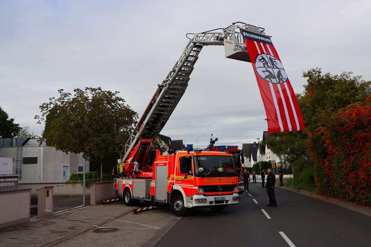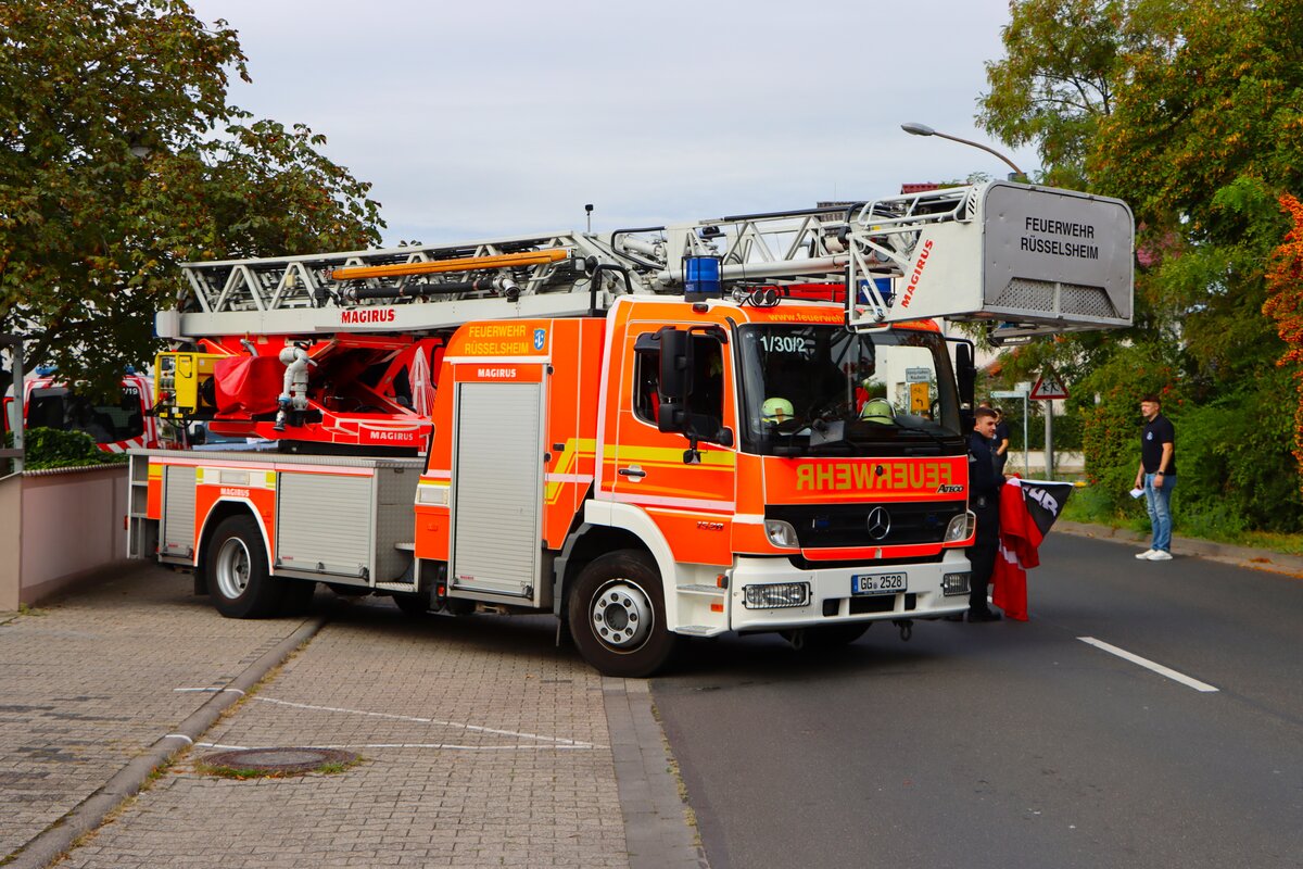 Feuerwehr Langenselbold Mercedes Benz Atego 1529 DLK (Florian Langenselbold 1-30-1) bei einer Jugendfeuerwehr Großübung am 25.10.25 in Erlensee an der Georg Büchner Schule