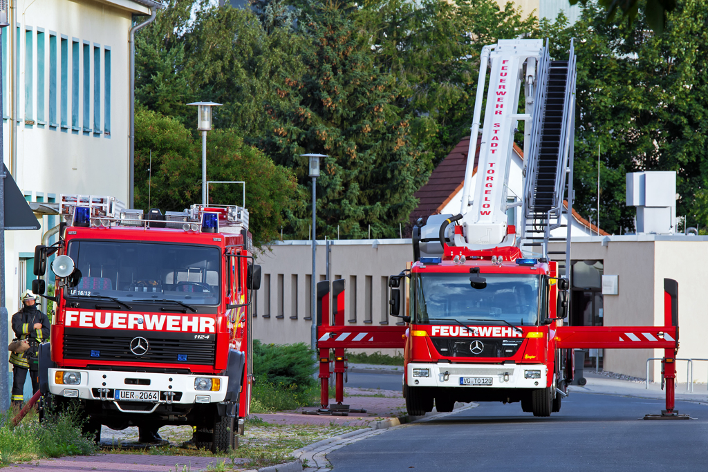Die Freiwillige Feuerwehr Torgelow ist mit zwei Einsatzfahrzeugen angerückt für eine Übung