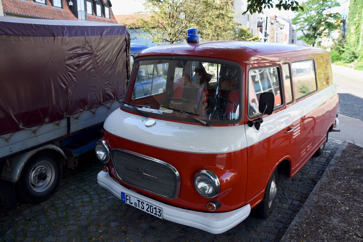 DDR-Oldie Barkas 1000 - aufgrund der Lackierung und der blauen Rundumleuchte - vermutlich immer noch als Feuerwehrfahrzeug tätig; in der DDR wurden diese Fahrzeuge als Kleinlöschfahrzeuge eingesetzt (gesehen in Flensburg, 02.09.2023) Reinhard Zabel