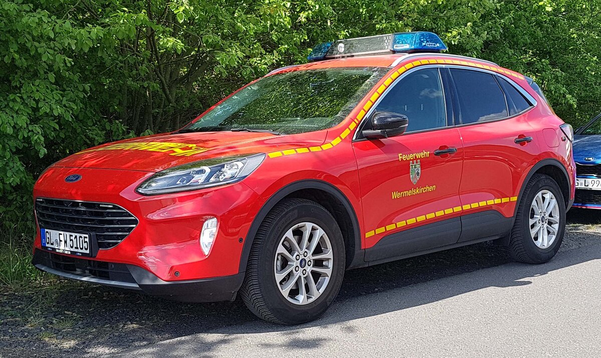 =Ford Kuga als Kommandowagen der Feuerwehr HÜNFELD steht auf dem Ausstellungsgelände anl. der Feierlichkeiten "100 Jahre Feuerwehr HÜNFELD" im Juni 2025