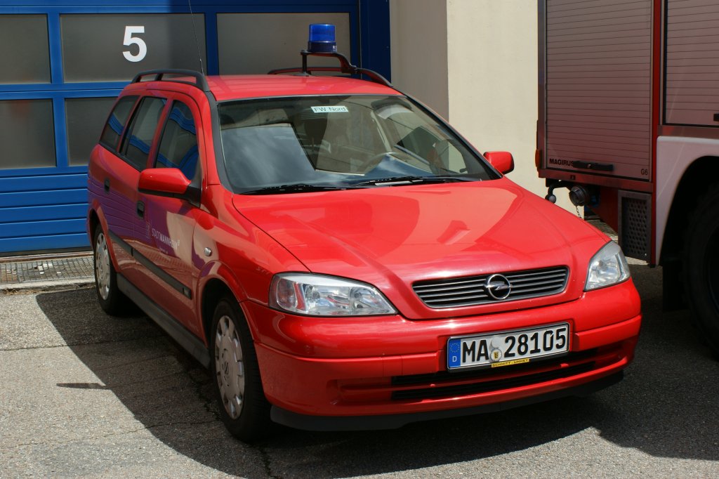 Opel Astra Caravan Kommandowagen 14 der Berfusfeuerwehr Mannheim, Feuerwache Nord.