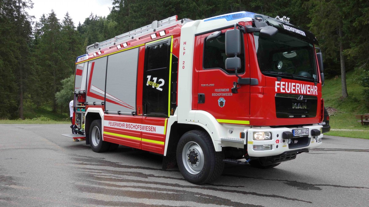 MAN der Feuerwehr Bischofswiesen bei einer Übungstour im Gemeindegebiet, Juli 2015