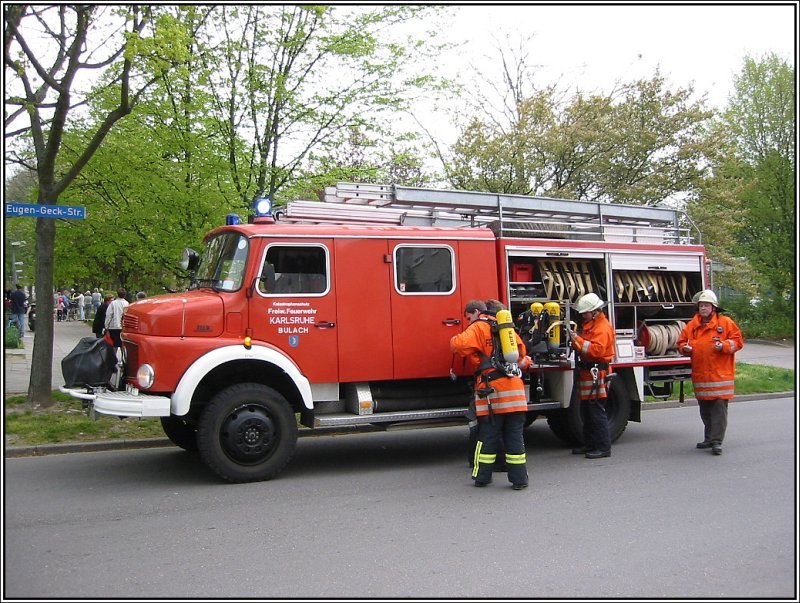 Bei einem Einsatz im Karlsruher Stadtteil Oberreut am 17.04.2004 war auch die Freiwillige Feuerwehr aus dem Stadtteil Bulach mit diesem älteren Rundhauber beteiligt.