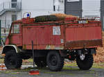 Ein Unimog Löschfahrzeug mit militärischer Vergangenheit steht in Hattingen. (Dezember 2018)