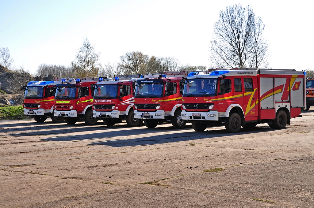 MB-Feuerwehrarmada hat Feierabend im Technik-Museum Pütnitz nach einem Trainingstag am 15.04.2010