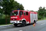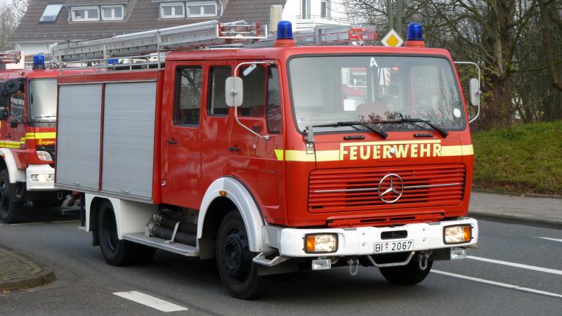 Während eines Einsatzes in Bielefeld-Schildesche aufgenommenes Fahrzeug der der Löschabteilung Schildesche. Hierbei handelt es sich um einen Mercedes 1017 als Löschgruppenfahrzeug (LF 16). Genaugenommen handelt es sich nicht um das Stammfahrzeug der LA. Es ist ein Reservefahrzeug der BF Bielefeld, welches an dem Tag bei der LA Schildesche tätig war.
