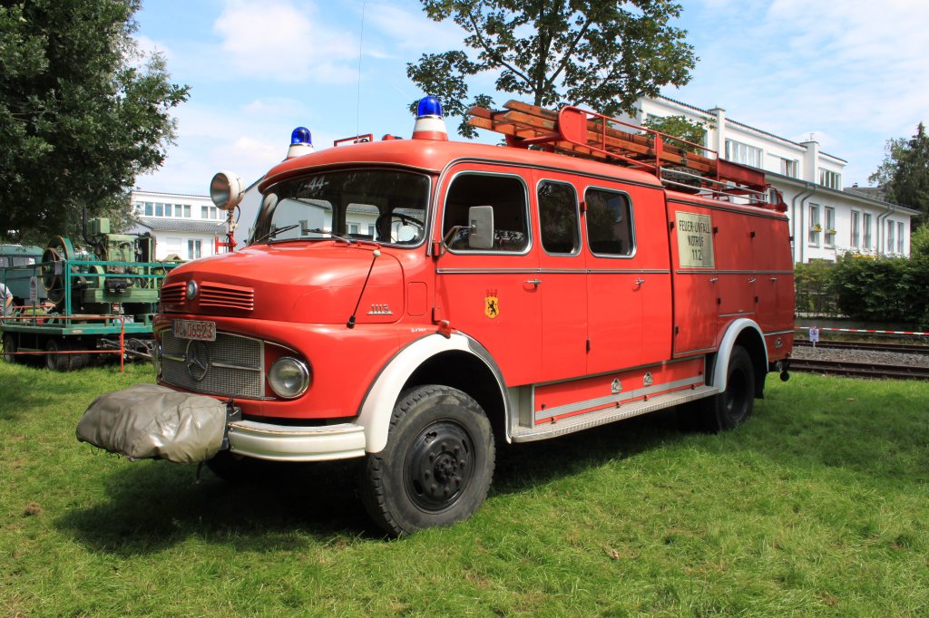 Löschgruppenfahrzeug Mercedes LAF 1113, Baujahr 1965. Das Fahrzeug hat einen 5,6 liter Motor mit 156 PS und kann 800 liter Löschwasser transportieren. Gesehen am 03.07.2011 beim Bahnhoffest in Walheim.