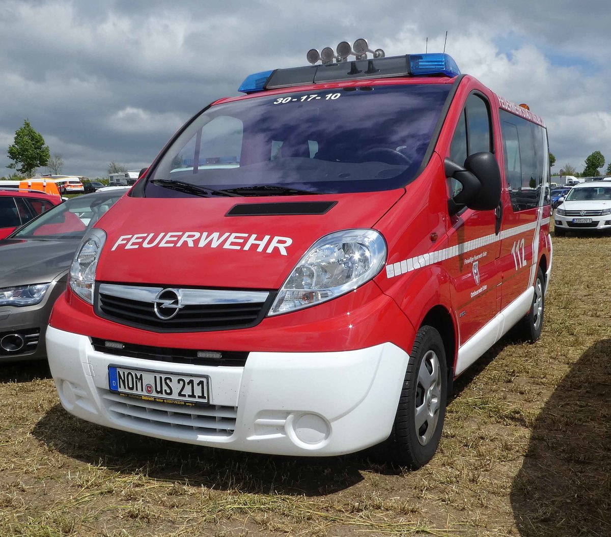 =Opel Vivaro der Feuerwehr USLAR, abgestellt auf dem Besucherparkplatz der Rettmobil 2019 in Fulda, 05-2019