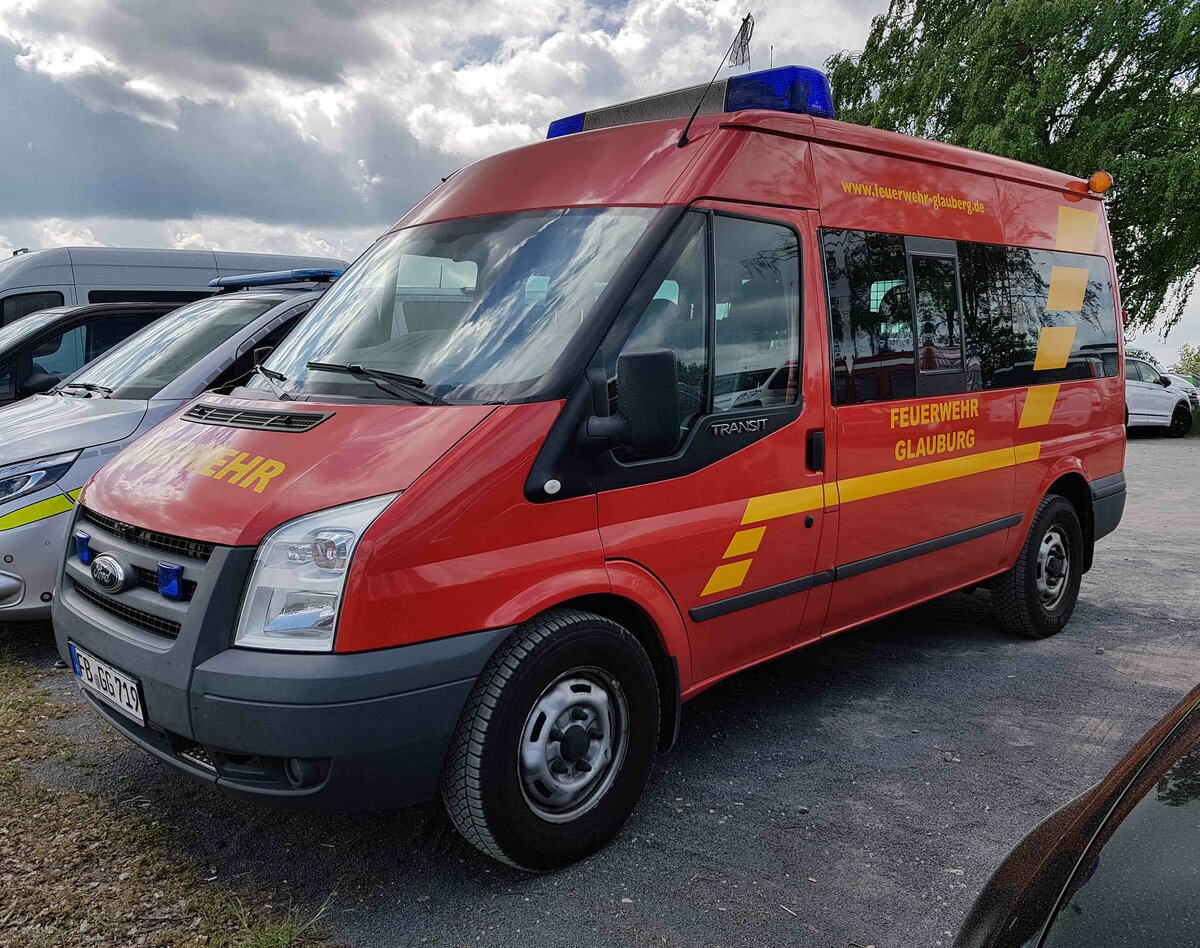 =Ford Transit als MTW der Feuerwehr GLAUBURG gesehen auf dem Parkplatzgelände der RettMobil 2022 in Fulda, 05-2022
