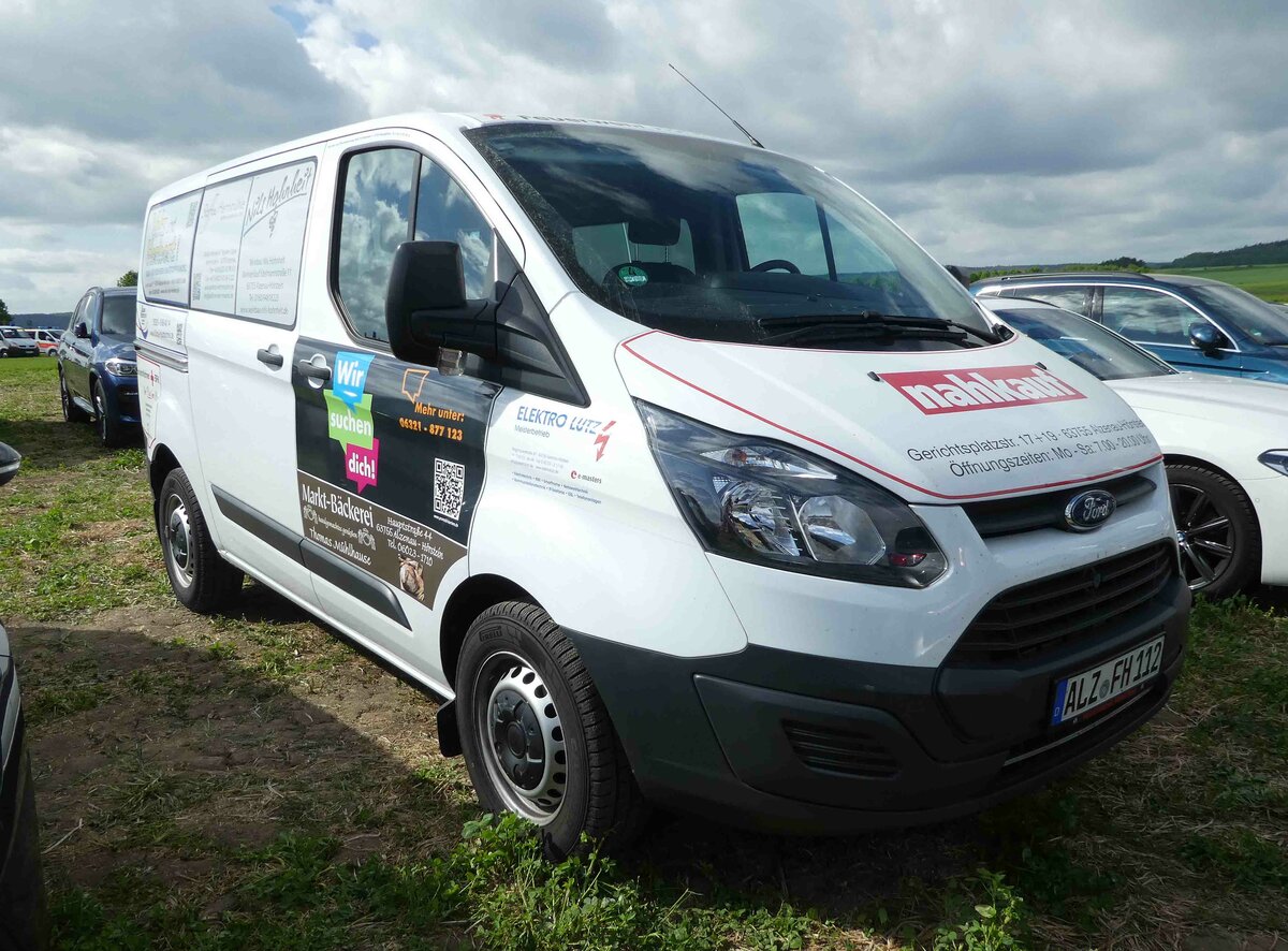=Ford Transit Custom der Feuerwehr HÖRSTEIN, als Werbeträger der Fahrzeugsponsoren, gesehen auf dem Parkplatz der RettMobil im Mai 2022