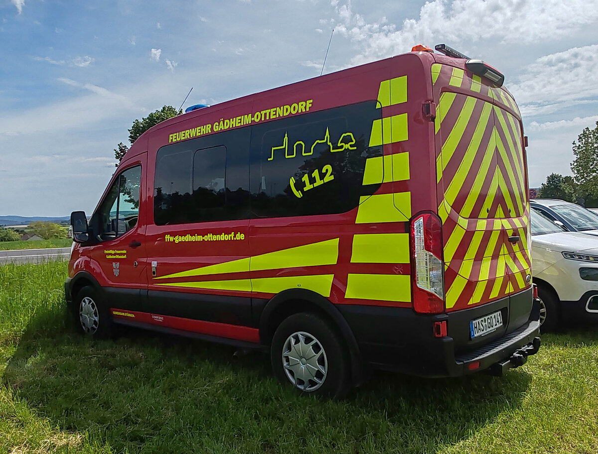 =Ford Transit als MTW der Feuerwehr GÄDHEIM-OTTENDORF steht im Mai 2024 auf dem Besucherparkplatz der RettMobil in Fulda