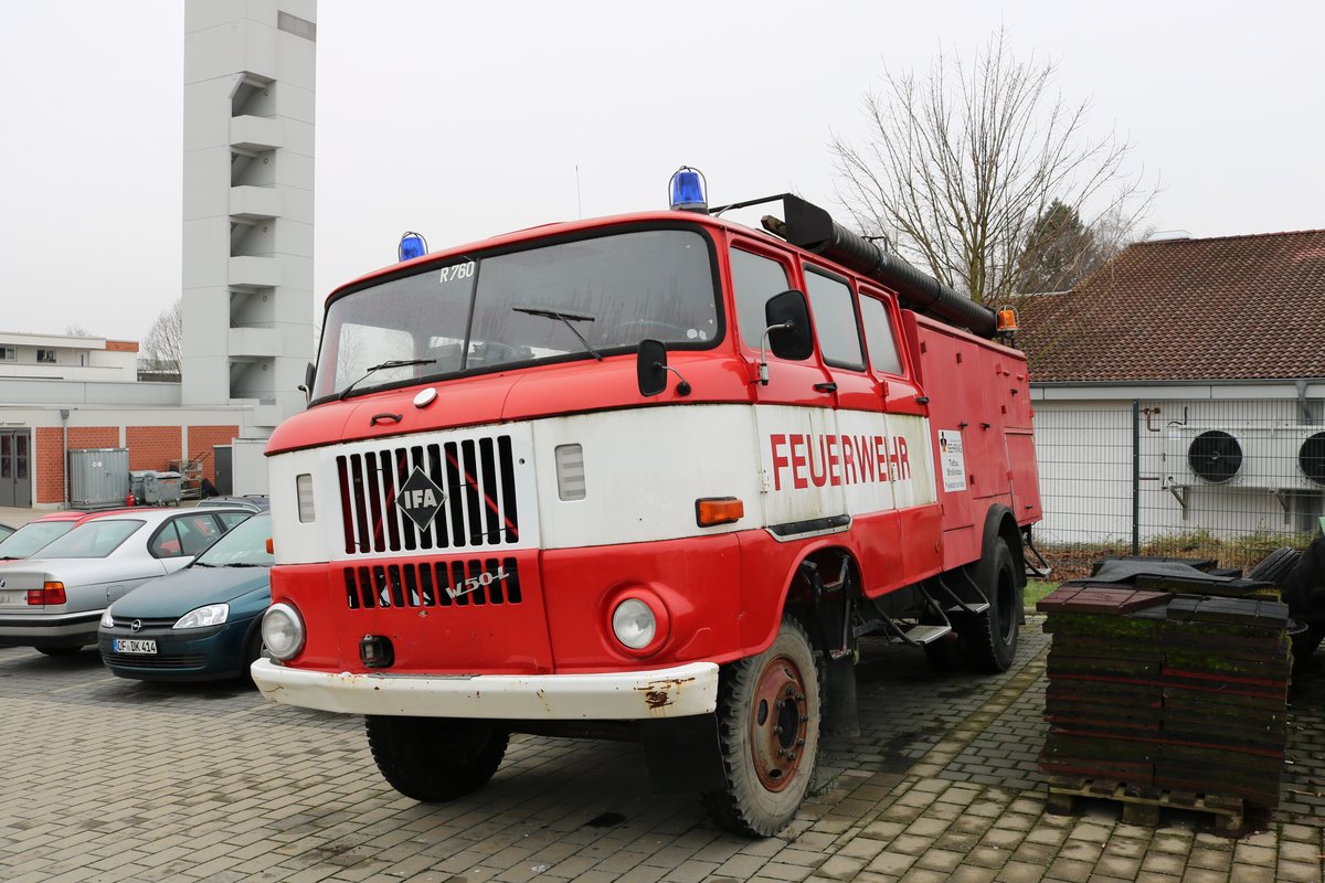 IFA W50 L Löschfahrzeug steht am 17.02.18 in Langen (Hessen) bei der Feuerwehr bei einen Fototermin fotografiert
