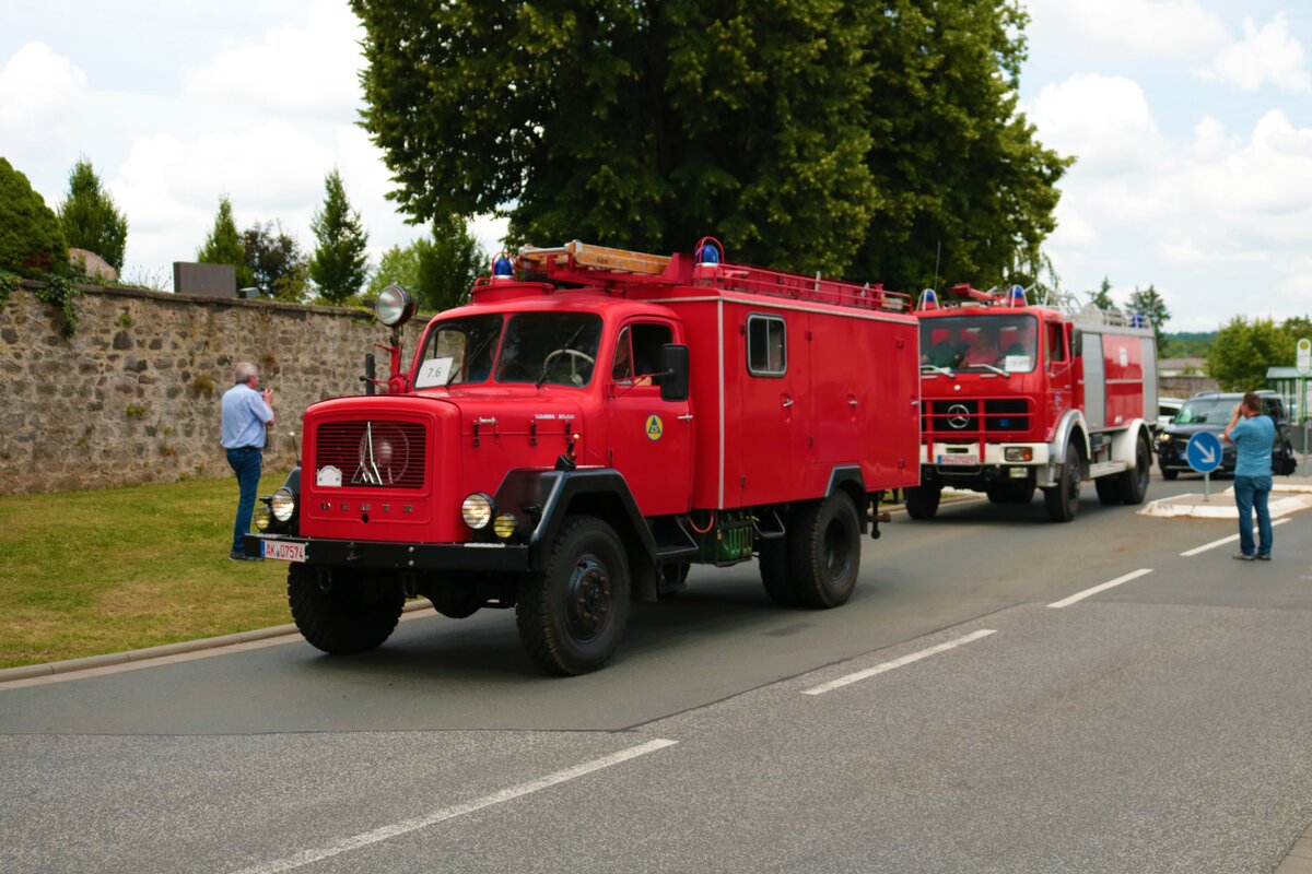 Magirus Deutz Löschfahrzeug am 04.07.21 bei einer Oldtimer Parade zum Jubiläum 75 Jahre Kreisfeuerwehrverband Gießen in Lich (Hessen)
