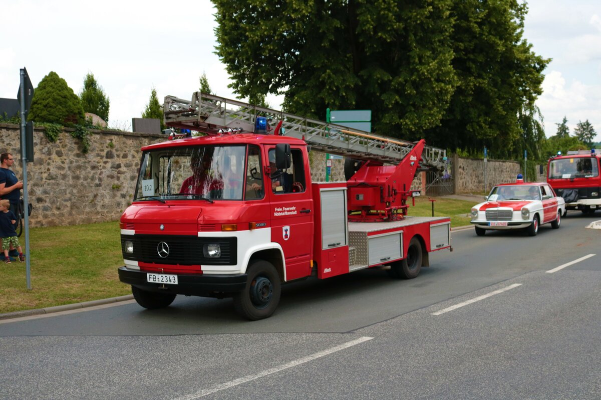 Mercedes Benz Feuerwehrfahrzeug am 04.07.21 bei einer Oldtimer Parade zum Jubiläum 75 Jahre Kreisfeuerwehrverband Gießen in Lich (Hessen)