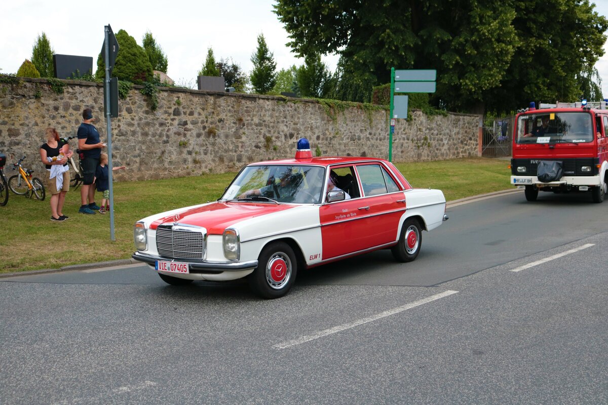 Mercedes Benz Feuerwehrfahrzeug am 04.07.21 bei einer Oldtimer Parade zum Jubiläum 75 Jahre Kreisfeuerwehrverband Gießen in Lich (Hessen)