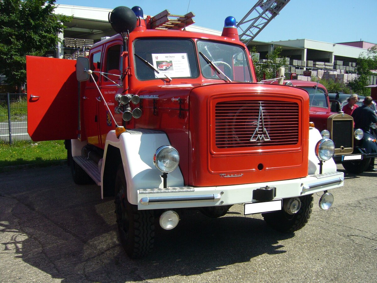 Magirus Mercur 150D 10A TLF 16/24 aus dem Jahr 1963. Das Fahrzeug gehört zum Fuhrpark der Feuerwehr Geldern am Niederrhein. Angetrieben wird der Feuerwehrwagen von einem V6-Motor mit einem Hubraum von 9500 cm³ und einer Leistung von 150 PS. Feuerwehr-Oldtimertreffen an der "Alten Dreherei" in Mülheim an der Ruhr am 18.07.2021.